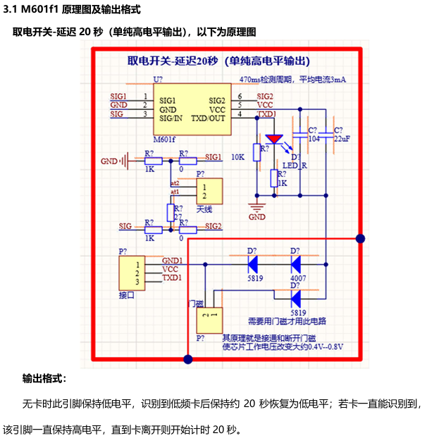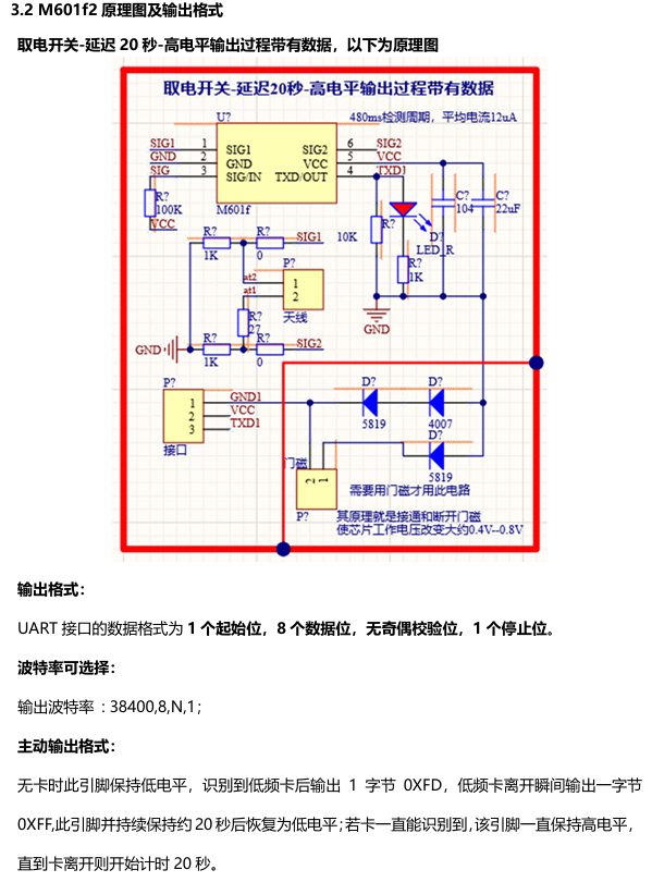 | M601f2 | 取電開關,延時20秒,高電平輸出,輸出過程帶數據 |