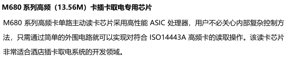 | M680 | ISO14443A卡片取電開關 |