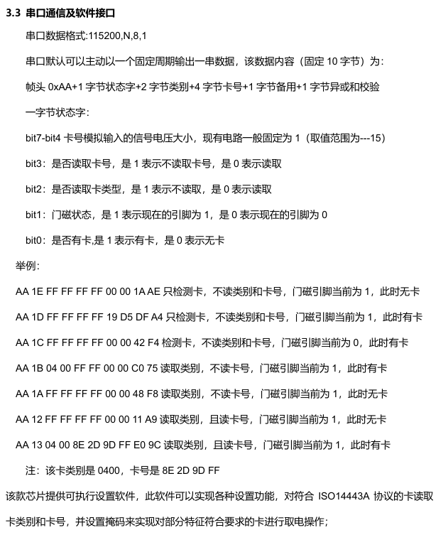 - 支持符合ISO14443A標準的高頻卡