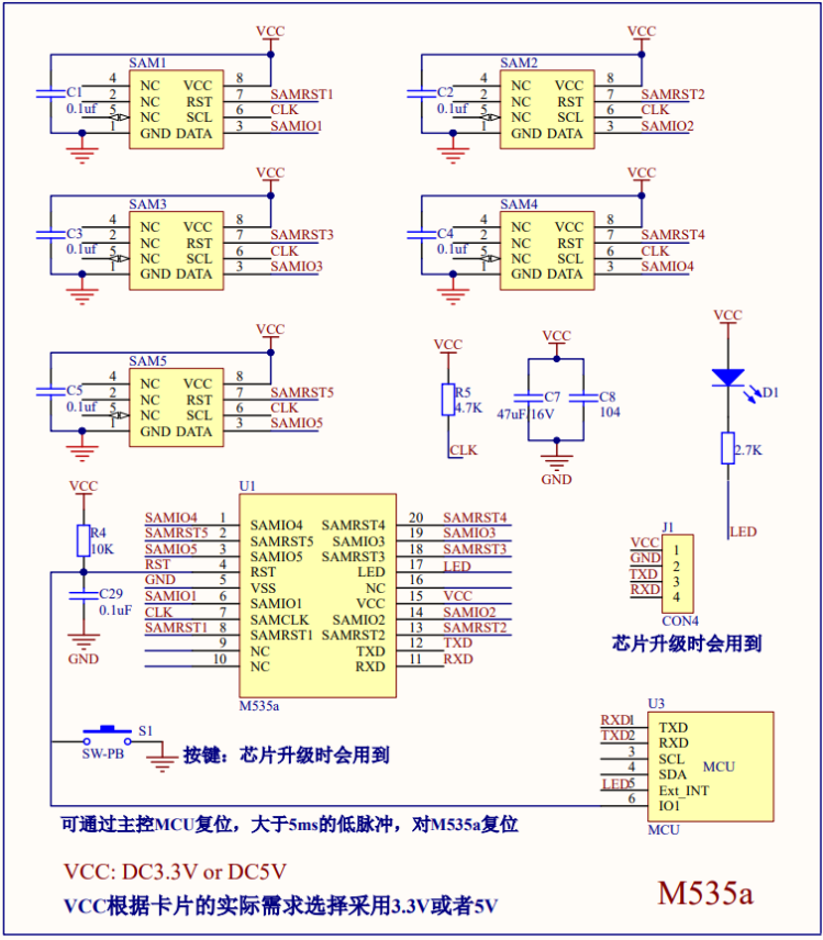 | M535a | UART接口 支持5個SAM卡 | SAM9600,SAM38400,ISO7816-4 CPU卡 |