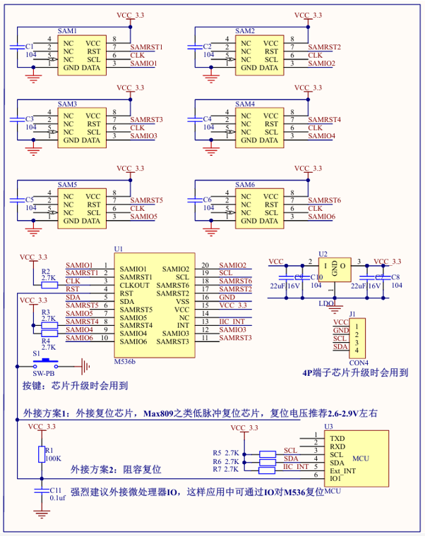 | M536b | IIC接口 支持6個SAM卡 | SAM9600,SAM38400,SAM115200, ISO7816-4 CPU卡 T=0/T=1卡片 |