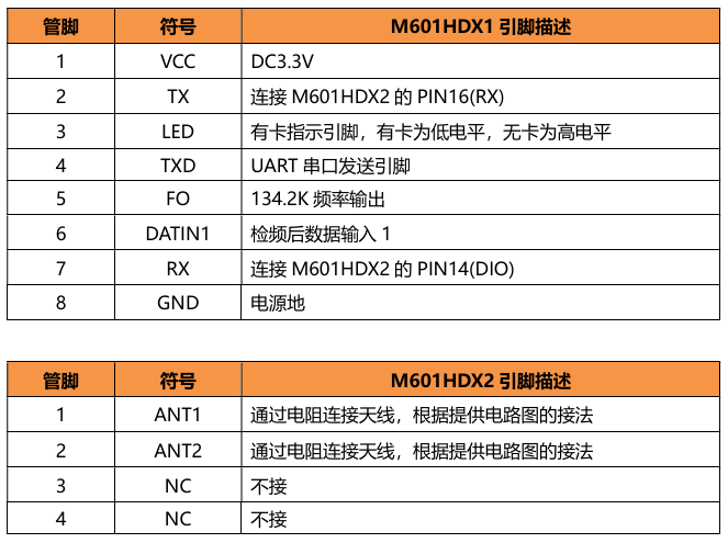 | M601HDX1 | 讀取HDX標簽需要和M601HDX2配合使用 |