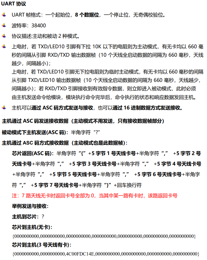| M606 | UART接口,波特率38400 | EM4001,EM4100,TK4001,TK4100及其兼容卡 |