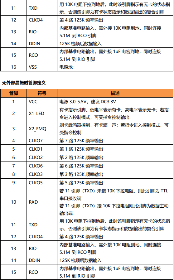 - 建議外掛4M工業級晶振,使讀卡距離穩定性更好,對于常溫下工作的用戶,對讀卡距離