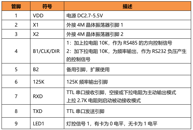 | M611a | UART接口 | EM4001,EM4100,TK4001,TK4100及其兼容卡 |
